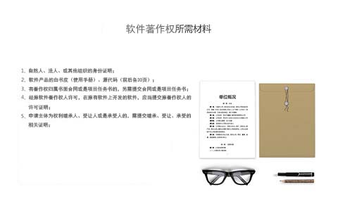 ① 软件著作权申请表; ② 软件研发操作说明书; ③ 软件代码3500行; ④ 公司营业执照;